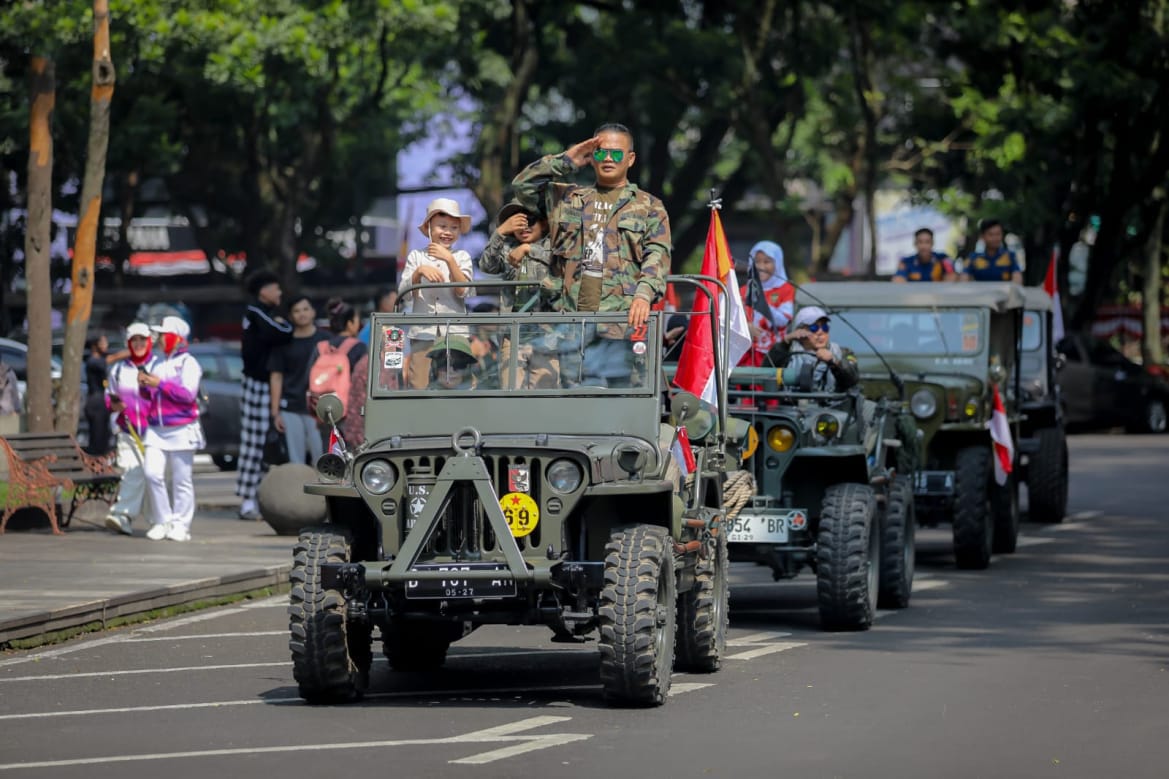 Parade ini kian menarik perhatian saat FTB 45 dan Komunitas Jeep Militer melintas dengan deretan kendaraan tua bersejarah. Deru mesin-mesin klasik itu seakan membawa penonton kembali pada suasana perjuangan mempertahankan kemerdekaan di masa lampau.