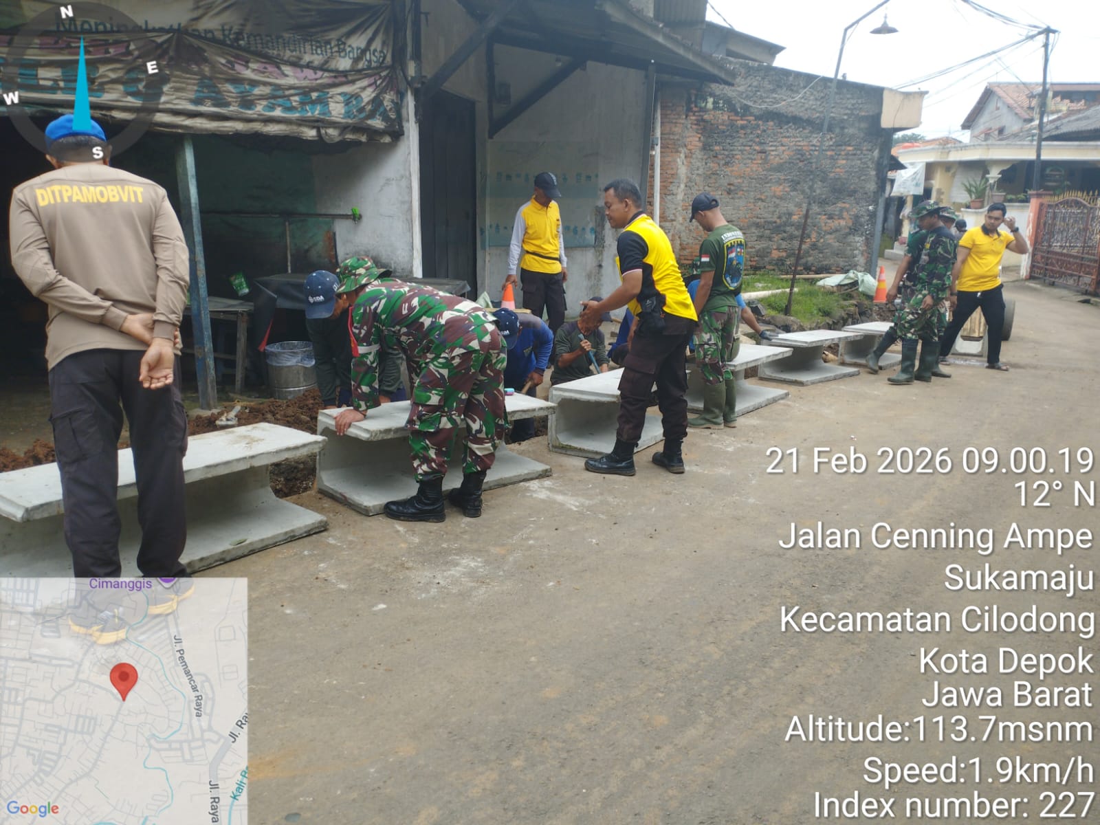 Program TMMD Ke-127 TA 2026 Kodim 0508/Depok terus bergerak progresif. Pada Sabtu, 21 Februari 2026, pengerjaan pembuatan drainase sepanjang 200 meter di Jl. Bojong Lio RT 03/28, Kelurahan Sukamaju, Kecamatan Cilodong, telah mencapai 50 persen.
