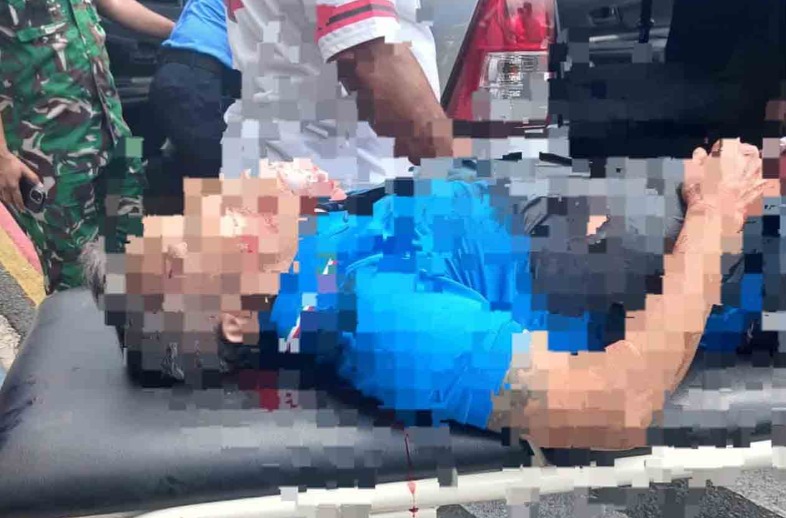 Berdasarkan rekaman video yang beredar, korban terlihat tergeletak di lokasi kejadian mengenakan kaos berwarna biru, dalam kondisi luka parah.