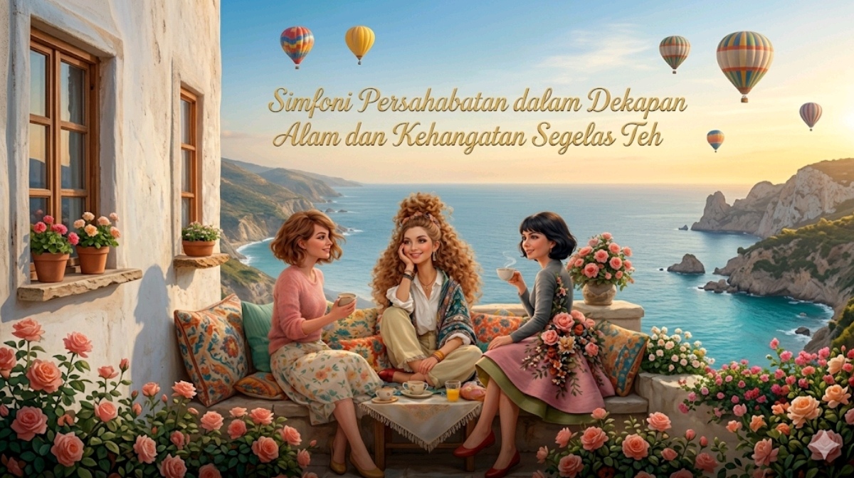 Duduk bersama sahabat di sebuah beranda dengan pemandangan laut biru yang tenang bukan sekadar aktivitas pengisi waktu luang. Di balik kepulan uap teh dan dekorasi bunga yang asri, tersimpan mekanisme pertahanan diri yang luar biasa bagi kesehatan mental manusia. Dalam dinamika kehidupan modern yang serba cepat, momen-momen tenang seperti ini menjadi oase yang memberikan ruang bagi individu untuk melepaskan beban emosional secara jujur. Persahabatan yang tulus berfungsi sebagai jaring pengaman sosial yang mampu menurunkan kadar stres dan meningkatkan rasa percaya diri melalui validasi yang diberikan oleh orang-orang terpercaya.