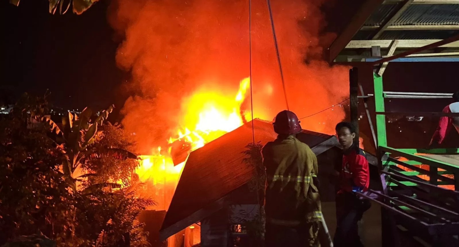 Kepanikan melanda warga Jalan Lingkar Kota, Gang Mawar RT 30 RW 03, saat api melalap dua unit rumah pada Rabu (25/2/2026) malam.