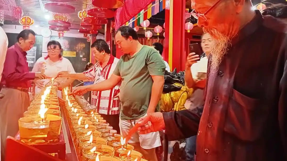 Pemimpin persembahyangan sekaligus pengurus kedua kelenteng, Budianto, mengatakan ibadah malam Imlek menjadi puncak perayaan bagi umat Tionghoa di wilayah tersebut.